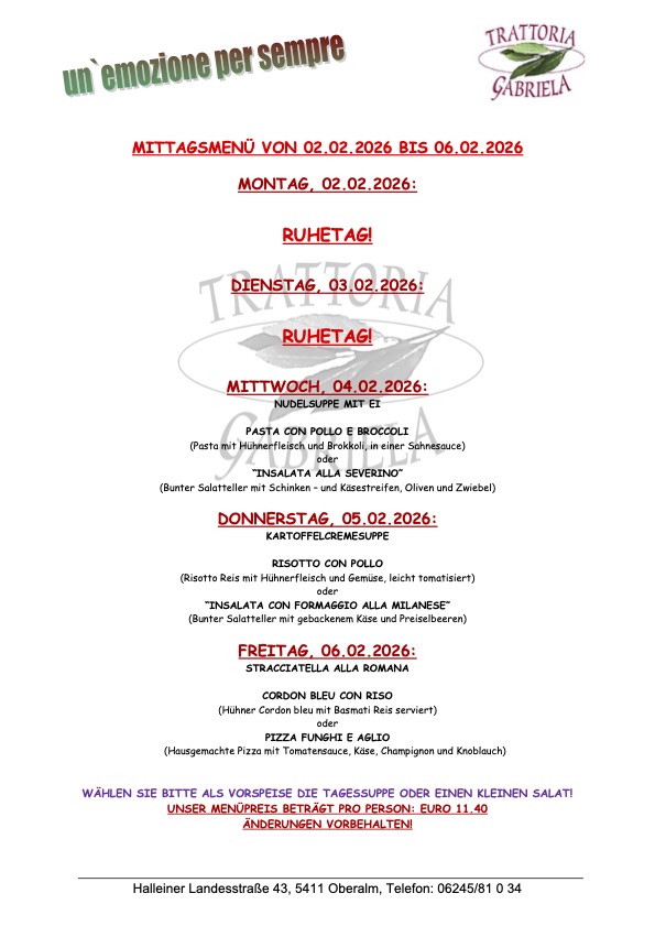 Von saisonalen á la carte Gerichten, über günstige Mittagsmenüs bis hin zu hausgemachten Desserts – wählen Sie aus unserer reichhaltigen Speisekarte und lassen Sie sich kulinarisch verwöhnen !!